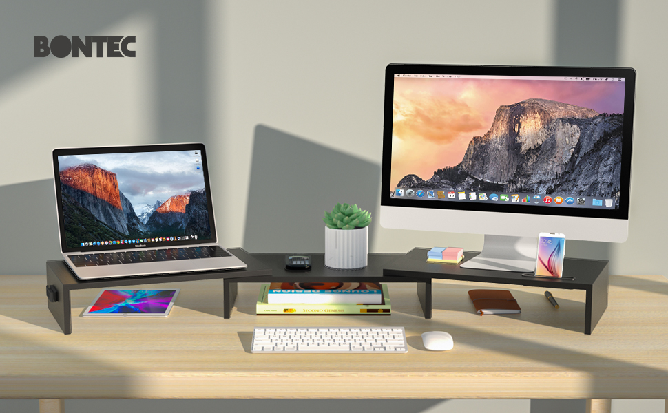 - Stable and solid structure: This screen riser made of high-quality MDF, with a waterproof, scratch-resistant and fingerprint resistant finish, is stylish and modern. It can support two monitors, allowing for simultaneous working, storing and gaming, providing exceptional stability and durability.