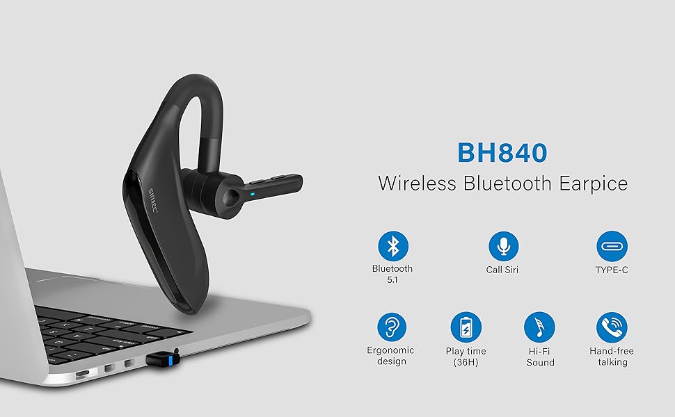 SUNITEC Bluetooth Headset with Microphone Wireless Headset Single Ear Wireless with Noise Cancelling USB Dongle CVC 8.0 Dual Mic to Mobile Phone/Mac/PC Over for Business/Office/Driving